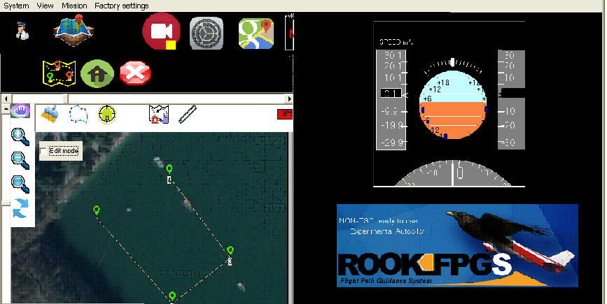 Mean while ROOK autopilot has two channel servo PWM signal out to control roll and pith for both features as auto waypoint guidance system and auto landing localizer guidance system, pilot can use the information available on display to pass the waypoints manually just like radio navigation systems in commercial flight such as VOR/NDB/ADF by direction correction indicator also precision landing by using localizer correction indicator while landing profile is activated, just like ILS in commercial flight.